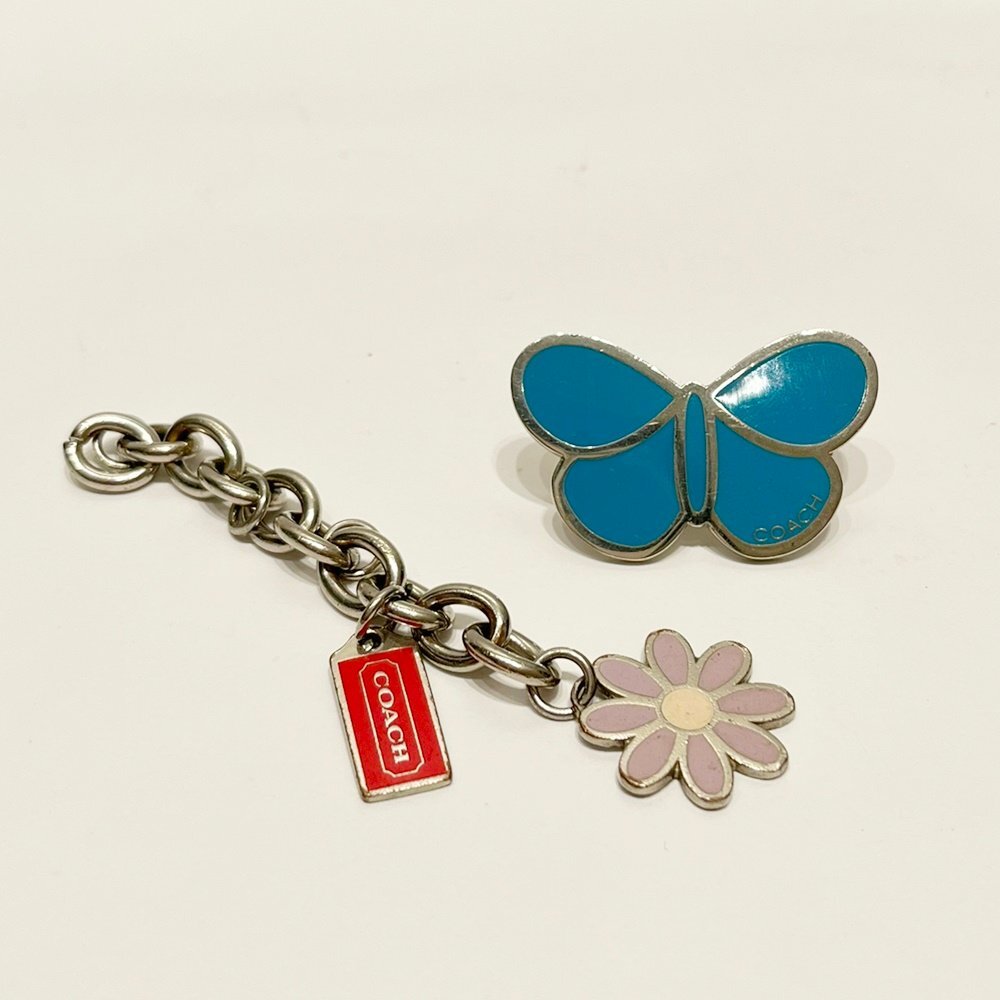 TO1 コーチ 蝶々 ピンバッジ 花 キーホルダー アクセサリー 2個セット