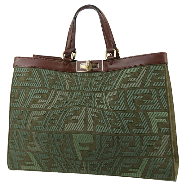 > フェンディ ピーカブー エックストート ズッカ 8BH374 カーキ キャンバス ハンドバッグ トートバッグ 1148