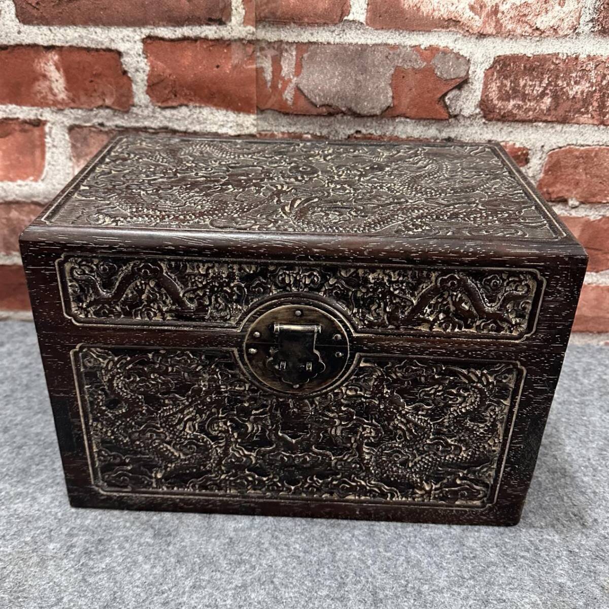 > 清時代 古紫檀木彫 雲龍 官箱 宝箱 秘蔵 壁挂 墻挂 中国唐物 時代物 骨董 中国古美術 古家具 古置物 木製 東洋彫刻 古賞物 中国古玩924