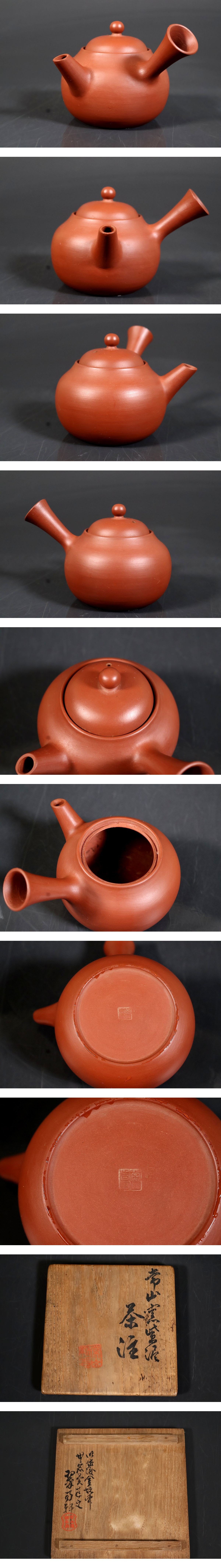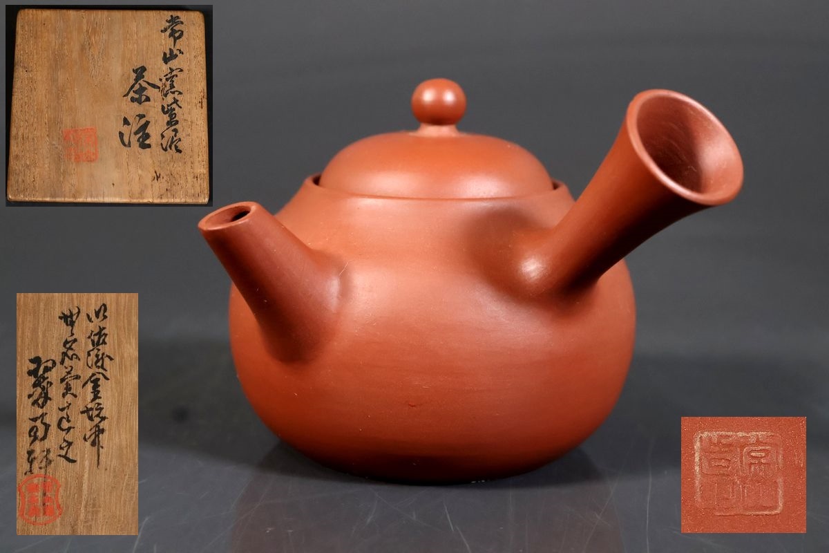 - 【小】5322 常滑の名工 山田常山 朱泥急須 共箱有 煎茶道具 常山在銘有 茶道具