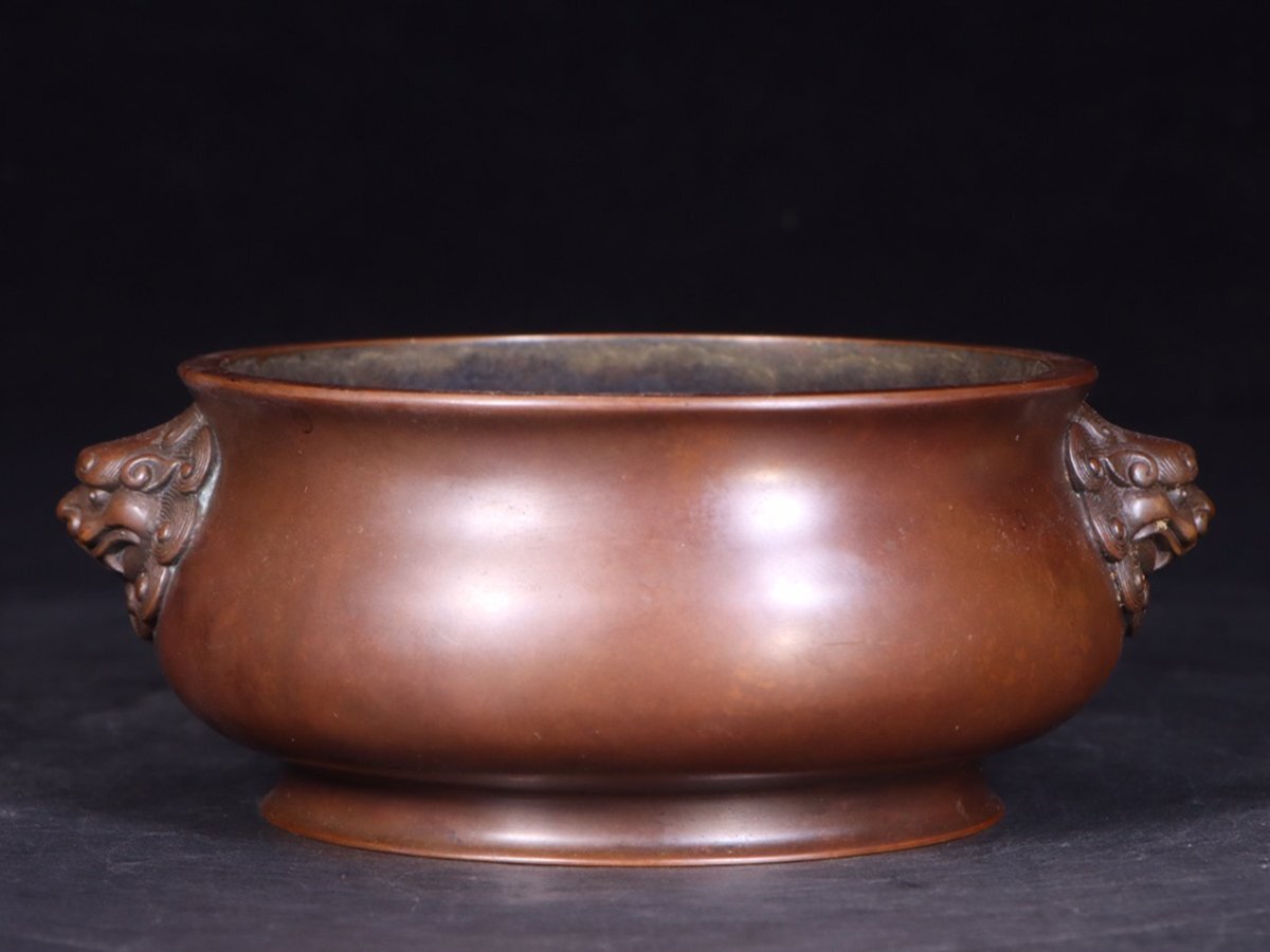 - 【安】明時代 大明宣徳年製 銅胎 獅耳香炉 極細工 古置物 古擺件 中国古美術 時代物 古董品 269