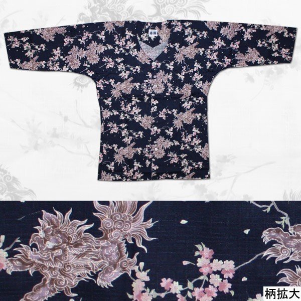 - お祭用品/肉襦袢 鯉口シャツ 唐獅子 紺K-14 3号 (子供用)
