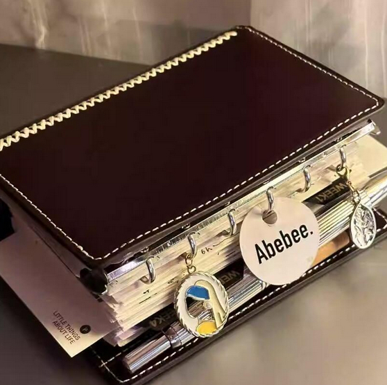 - 人気品 システム手帳 ダブルリング A7 無地80枚 カバー 3個ストラップ バインダー リフィル付き ミニ ブラウン
