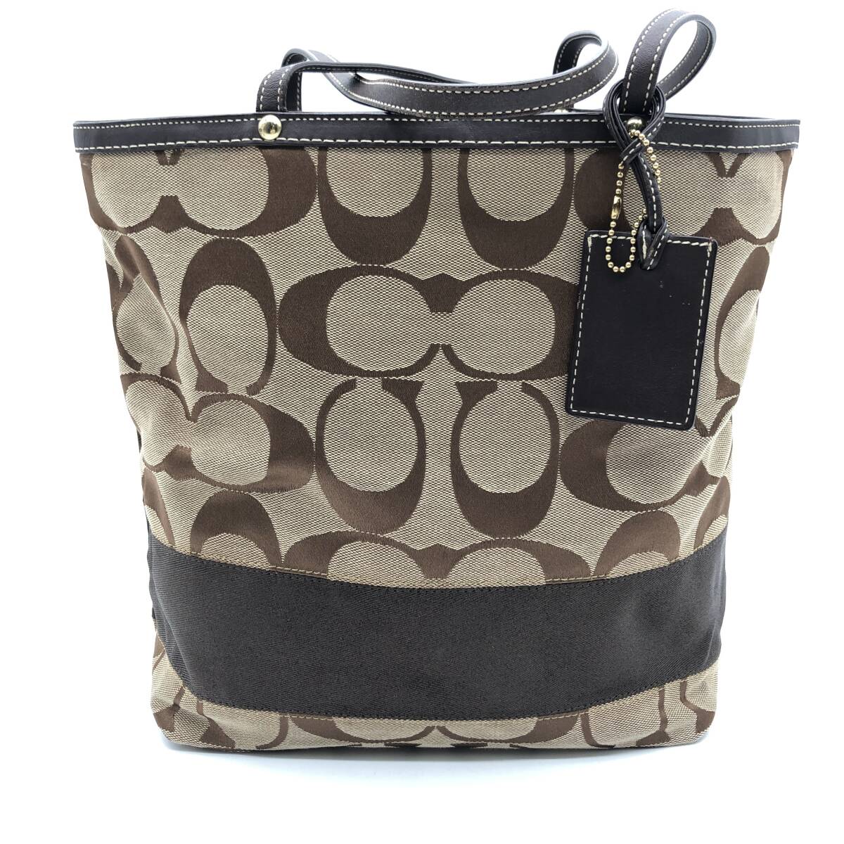 > 【美品】COACH コーチ シグネチャー柄 トートバッグ ハンドバッグ ブラック ブラウン ブラック メンズ レディース カバン バッグ H