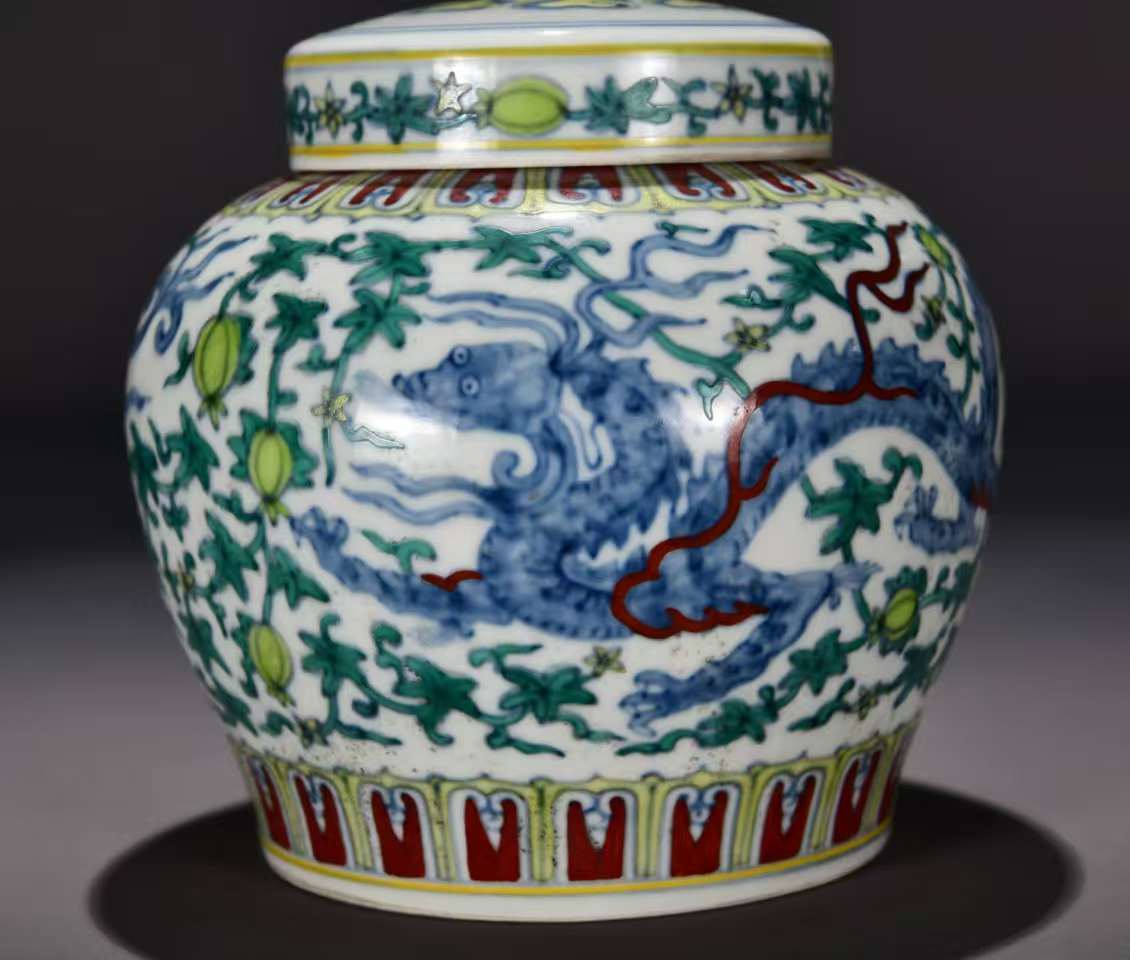 - 磁器 大明成化年製 鬥彩 龍紋 罐 古陶瓷 古擺件 古置物 中国古玩 骨董品 時代物 稀少唐物
