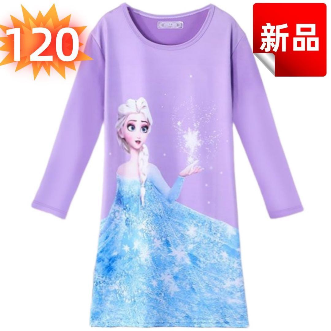 - ★新品★アナと雪の女王 エルサ パジャマ 長袖 ワンピース キッズ 女の子 子供服 ルームウェア ナイトドレス 紫 パープル 120cm