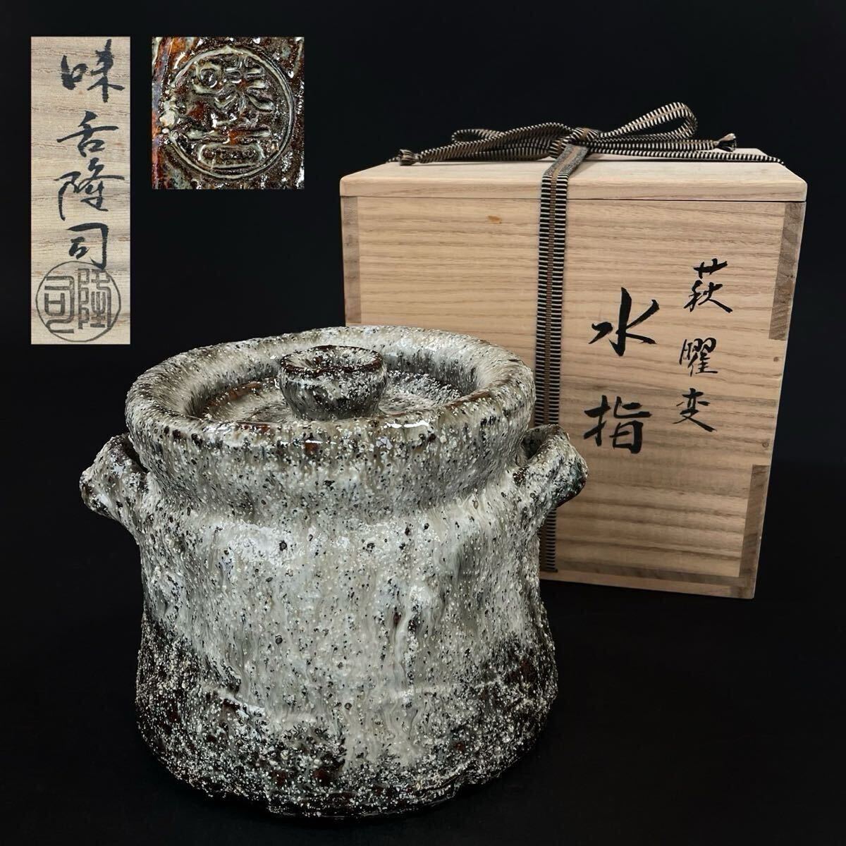 - 茶道具 味舌隆司 萩 曜変 水指 耳付 焼物 陶芸 共箱(1b052608 0)