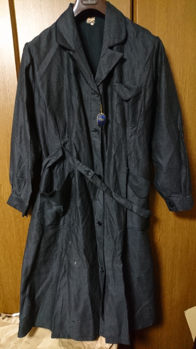 > デッド NOS デッドストック 40s フレンチ ビンテージ ヴィンテージ ESKA シルク ワークコート ガウン ドット柄 アトリエコート 黒シャン
