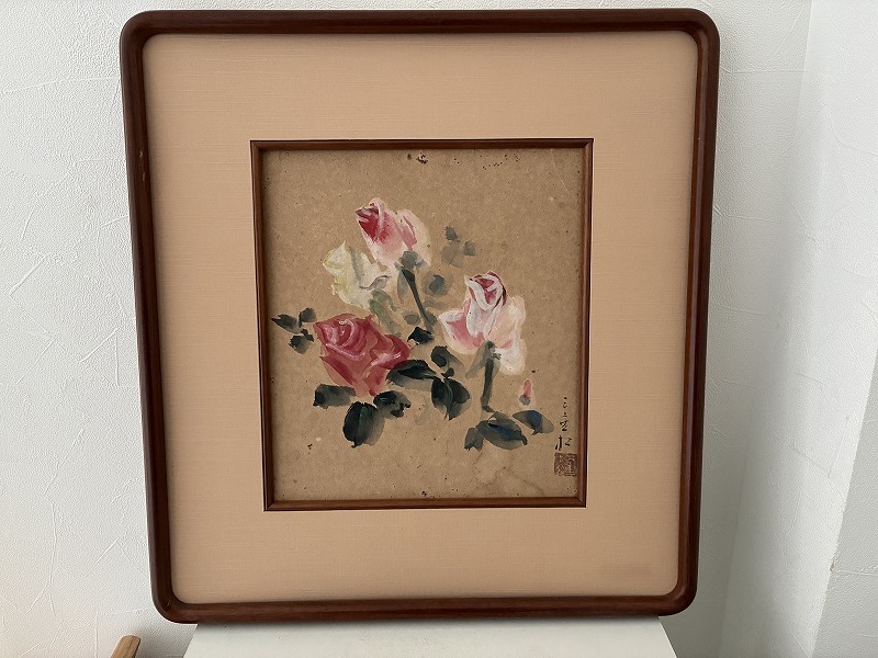 色紙画 水彩画 田辺三重松 真作保証 額装です。