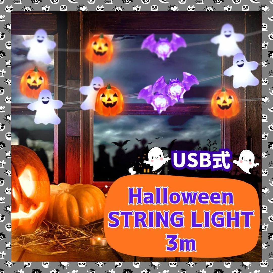 - ゴースト カボチャ コウモリ LED 3m 30LED USB ハロウィン 電飾