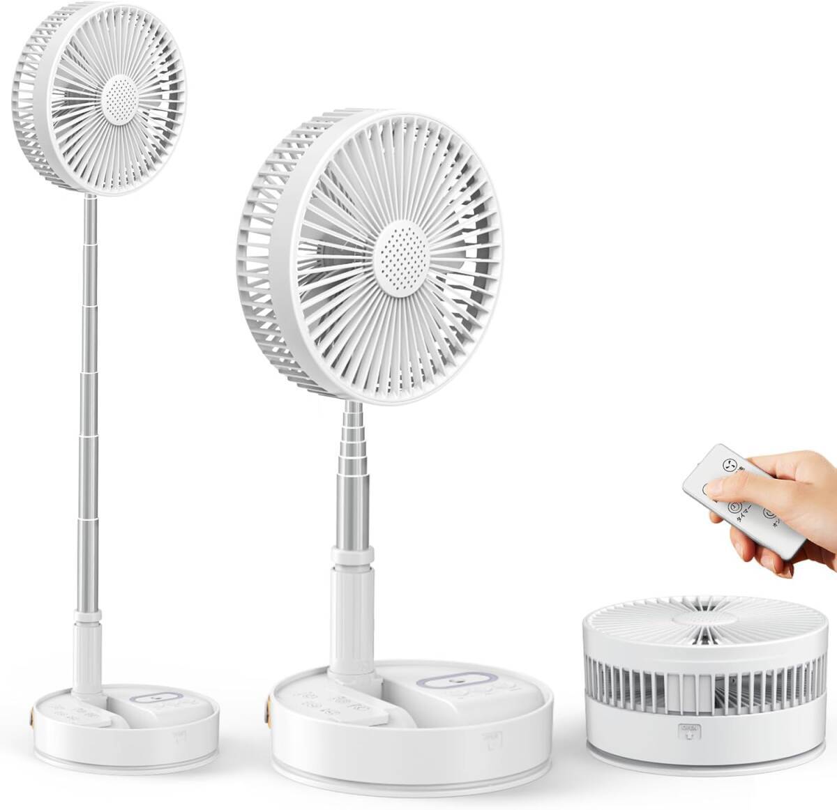- 【5役1台・自動首振り&最長35時間稼働】折りたたみ 扇風機 リビング扇風機 10800mAh大容量バッテリー・DCモーター搭載