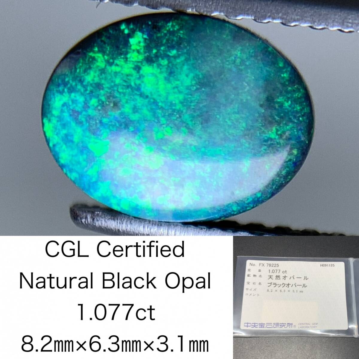 - ブラックオパール 天然 1.077ct 中央宝石ソーティング付き 8.2×6.3×3.1 ルース( 裸石 ) 6703Y