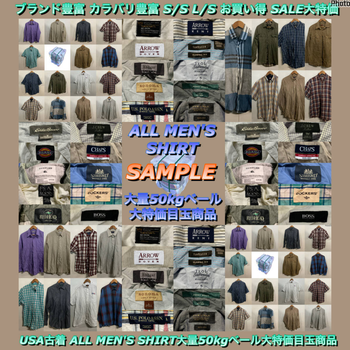 - 【T1447】★オススメ★ アメリカ古着卸オススメALL MEN'S SHIRT大人気大量50kgベール 半袖長袖ブランド豊富 カラバリ豊富 サイズMIX