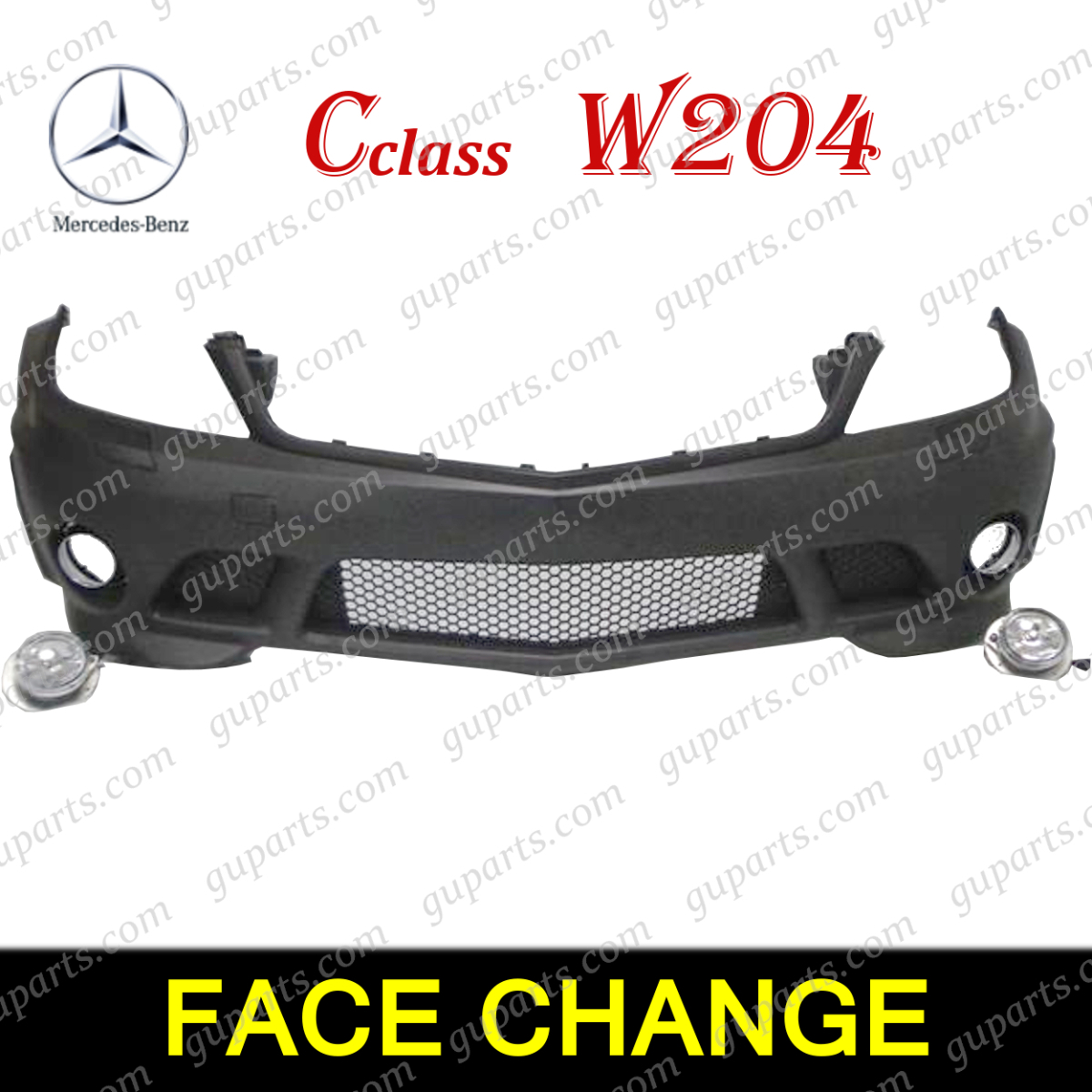 > ベンツ C W204 C200 C250 C300 → C63 AMG LOOK 2007~2011 前期 フロント バンパー スポイラー エアロ ボディ キット フォグ 付 穴 無