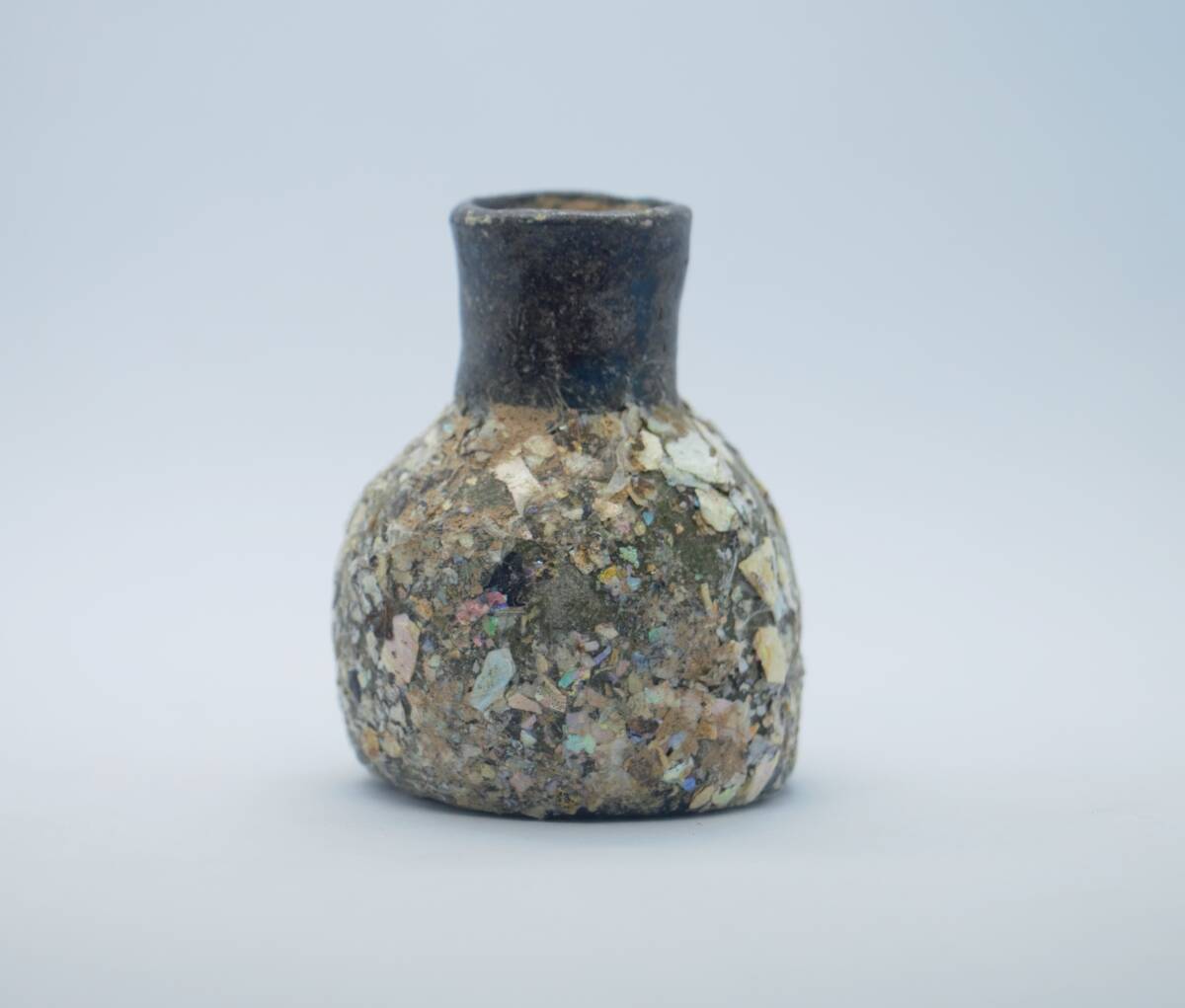 - 古代ガラス ローマン銀化グラス 壺 瓶 アフガニスタン出土 紀元3~4世紀頃 48g