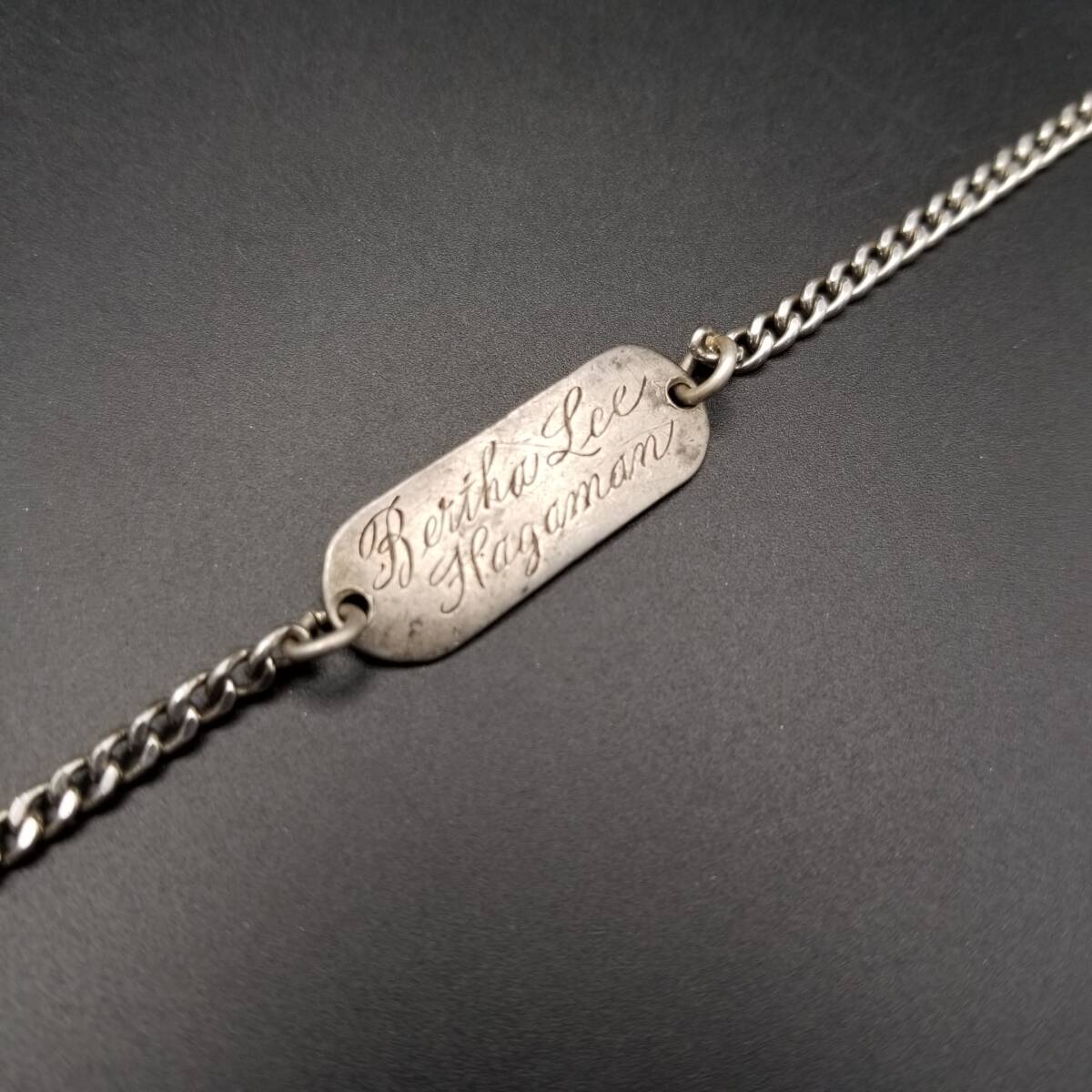 - IDタグ オーバルプレート 925 シルバー ヴィンテージ ブレスレット 銀 ネーム彫金 Bertha Lee Hagaman 華奢 レトロ 24-S