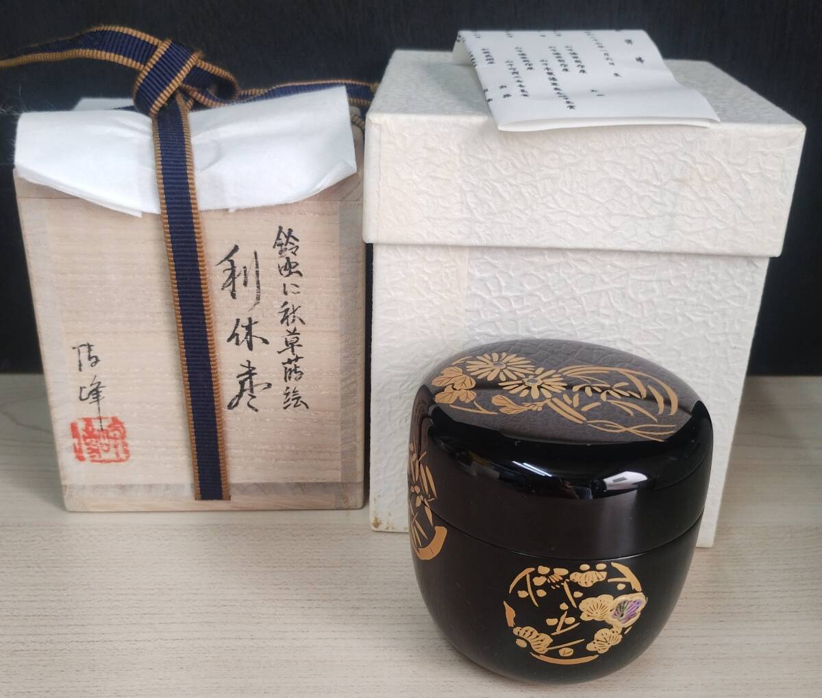 - ●美品● 中谷博峰 鈴虫に秋草(螺鈿入) 中棗 利休棗 塗合口 共箱 茶道具