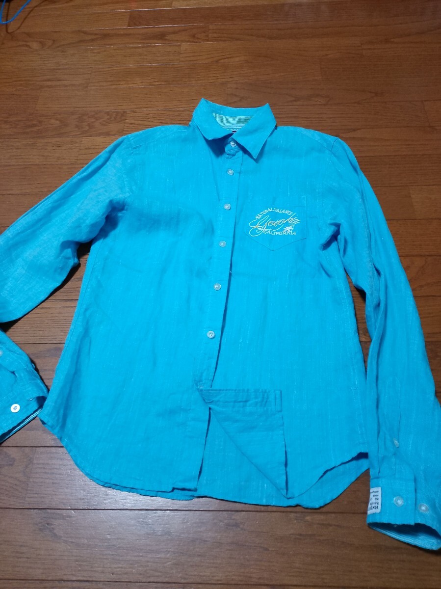 - GOTCHA ガッチャ 春夏 ロゴ刺繍★ 【麻 リネン】 長袖 シャツ Sz.S メンズ 青 麻100%