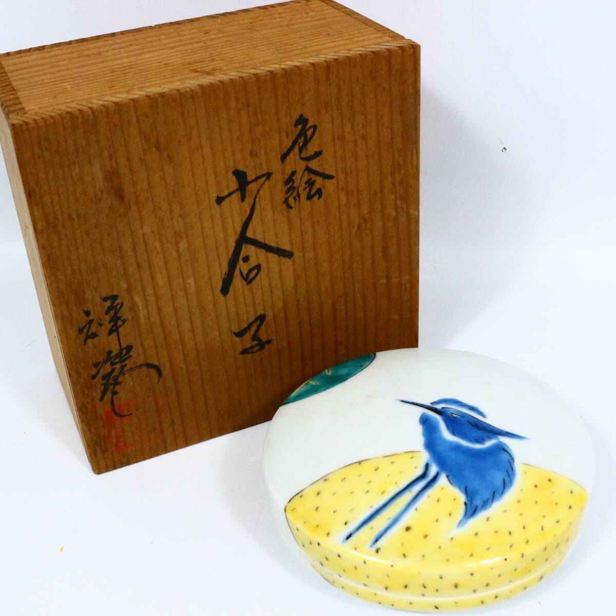 - 小野祥瓷 香合 色絵 共箱 茶道具 香道具 蓋物 小物入