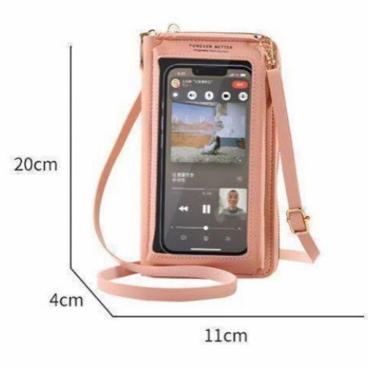 - お財布 ショルダーポーチ スマホポーチ 長財布 縦型 PUレザー ピンク