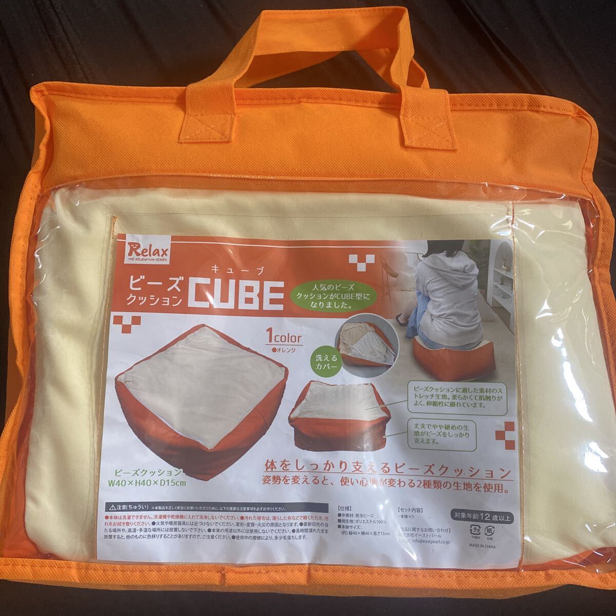 > ビーズクッション★キューブCUBE★40×40×15cm★洗えるカバー★オレンジ★ポリエステル 100%