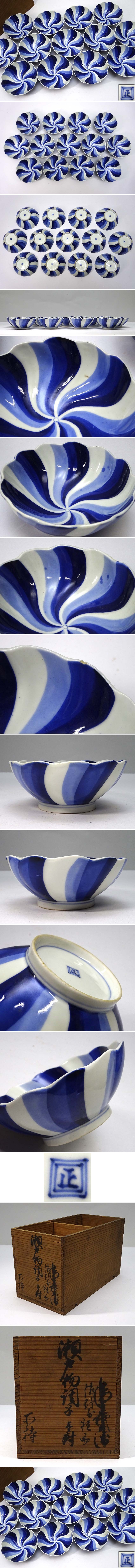> 緑屋t■ 時代物 染付 捻子文 小鉢 向付 13点 古陶磁 i9/7-7337/10-4#80