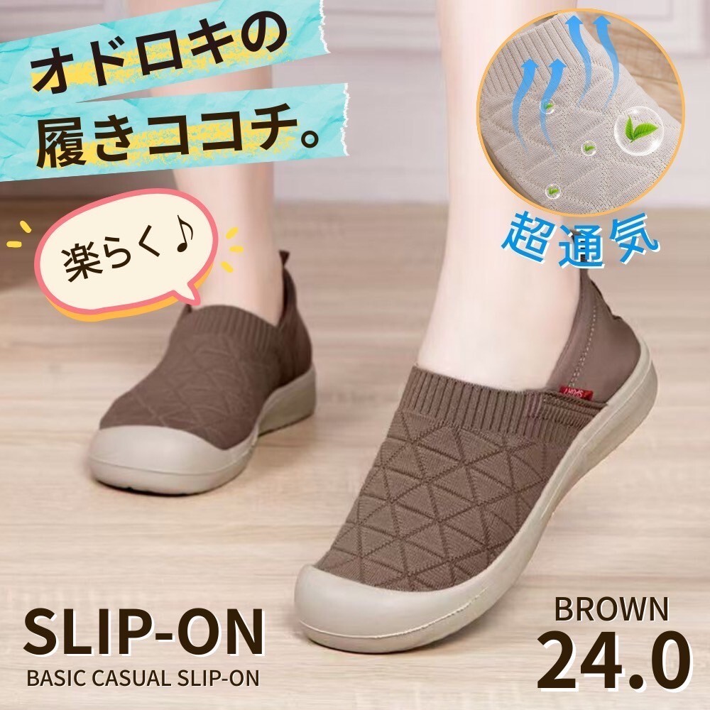 > スリッポン レディース スニーカー フラットシューズ 軽量 通気性 歩きやすい ブラウン 24.0