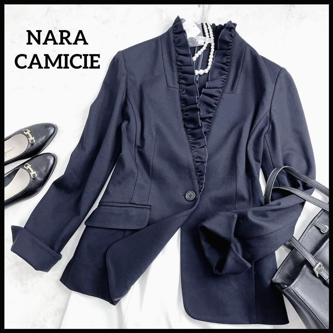 - ★新品★ナラカミーチェ 1つボタンジャケット 立ち襟 フリルカラー ネイビー M