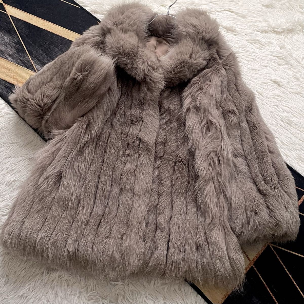 > さらさら◎/総丈80 染め/カラー フォックス/FOX ラベンダー フォックス ファーコート リアルファー 毛皮 XL 毛並み◎ 柔らか◎ 狐 アウター