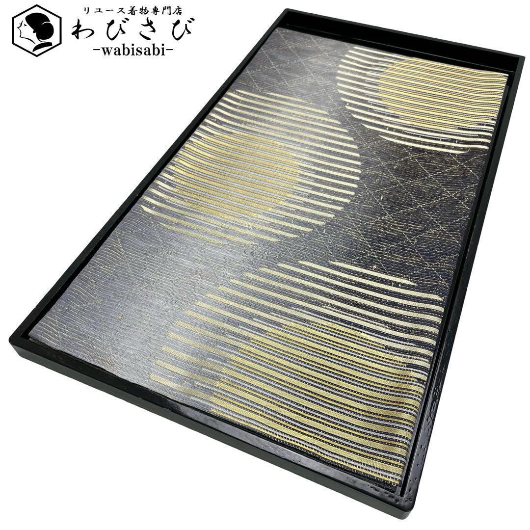 - 袋帯 モダンな雰囲気の灯り柄 金銀糸 格子模様 紺鉄色 O-4505 着物 きもの kimono 和服 和装 中古 リサイクル着物 【送料無料】