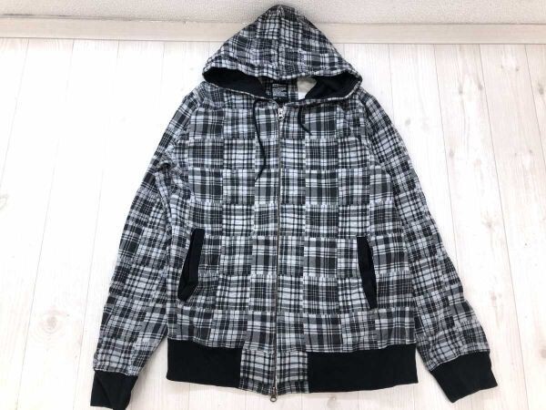> グラニフ graniph ストリート チェック パッチワーク プリント スウェット ジップアップ パーカー メンズ コットン100% L 黒グレー