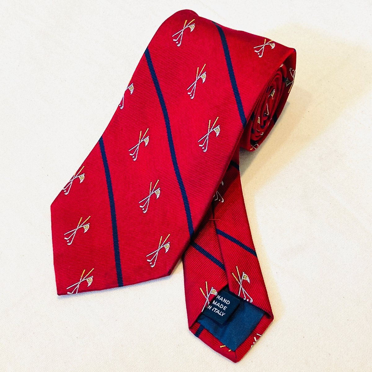 - Polo by Ralph Lauren ラルフローレン イタリア製 絹 シルク SILK 100% 高級 ネクタイ レッド系 ストライプ柄