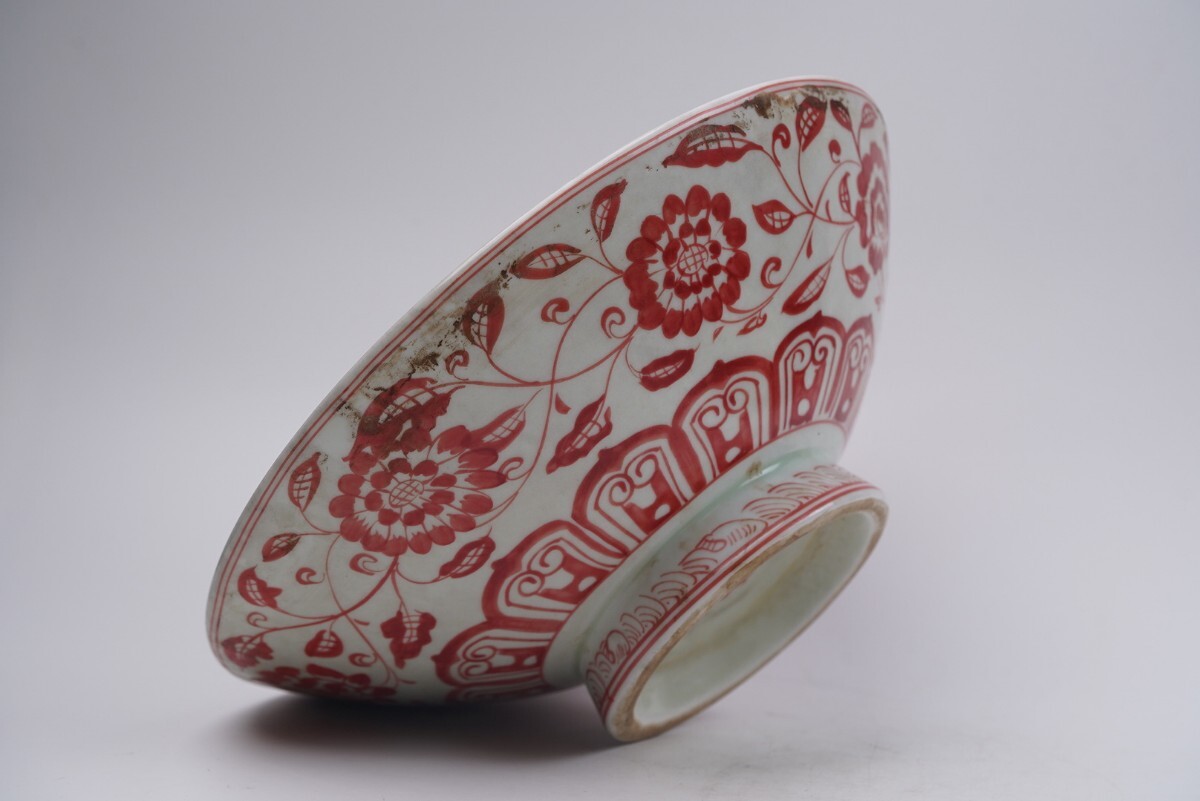 > 【萬藏】中国古美術 明時代 赤絵 茶碗 成 陶磁器 骨董 古玩 時代物 中国美術 古美術 骨董品 唐物 当時物 口径27cm 高さ10cm