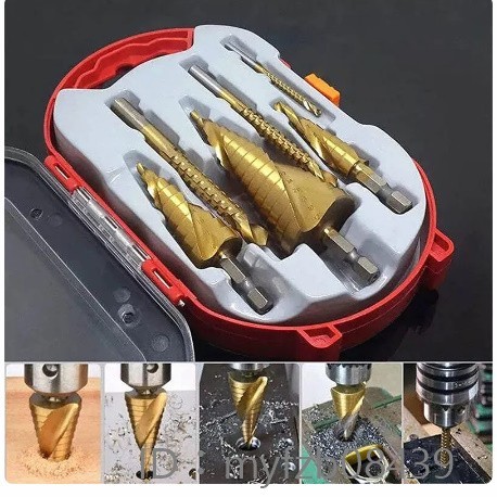 - jy05:6本 セット ケース付 ステップドリル 木工 ツール 4-12 4-20 4-32mm 金属製 ドリルビット ステップビット ドリル チタン加工