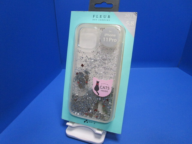 - air-J iPhone11Pro キャットグリッター背面 ケース メがキラキラ流れていく 猫グリッター ミネラルオイルを使用