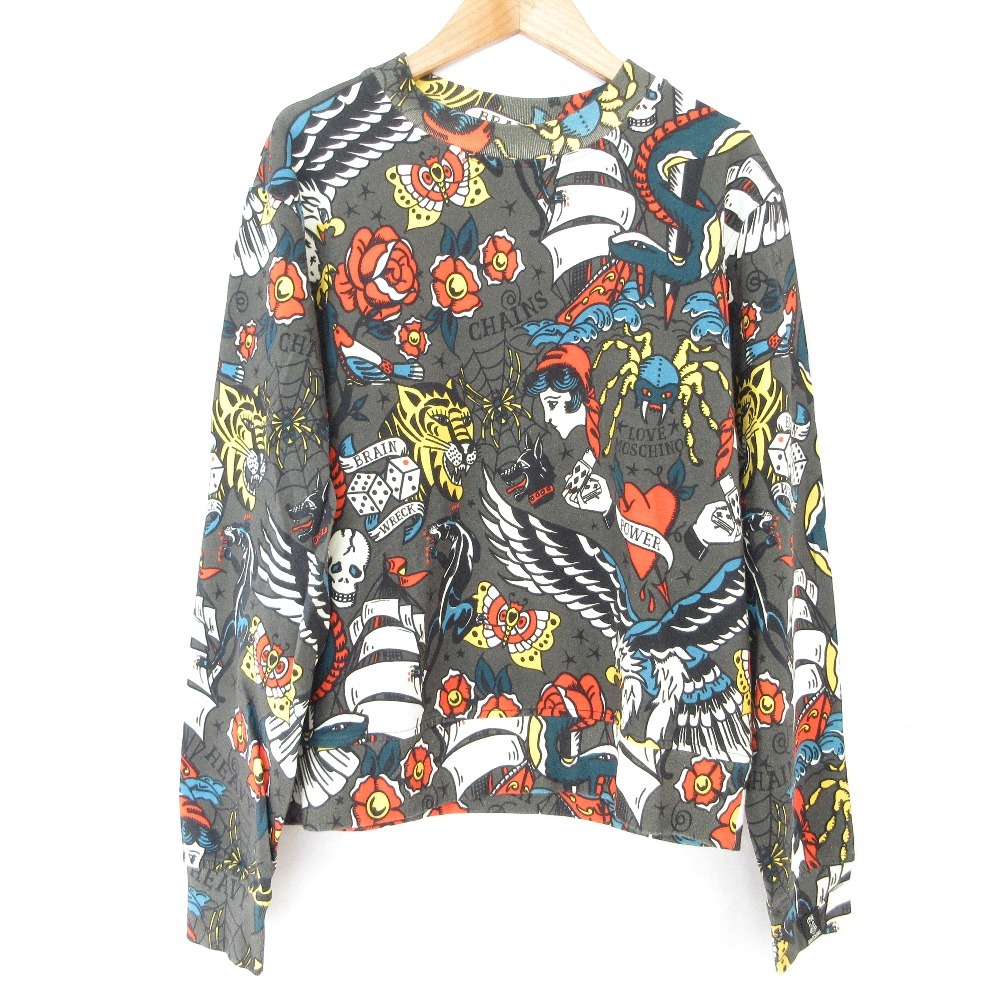 > 美品 LOVE MOSCHINO ラブモスキーノ Tattoo Print Sweatshirt 長袖 カットソー プルオーバー 42 グレー系 マルチカラー