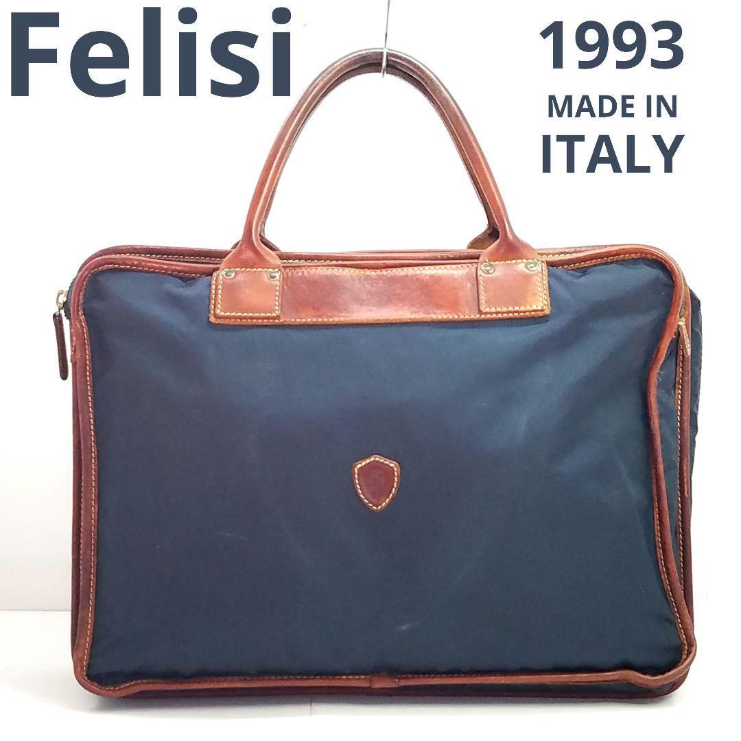 > 送料無料 Felisi フェリージ ブリーフケース ビジネスバッグ 1993 ネイビー ナイロン×本革 レザー 茶 ブラウン 通勤 イタリア製 書類鞄