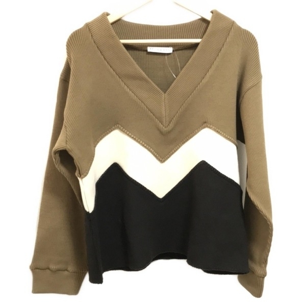 > レジーナピョウ REJINA PYO 長袖セーター/ニット サイズM - ブラウン×アイボリー×ダークブラウン レディース Vネック トップス