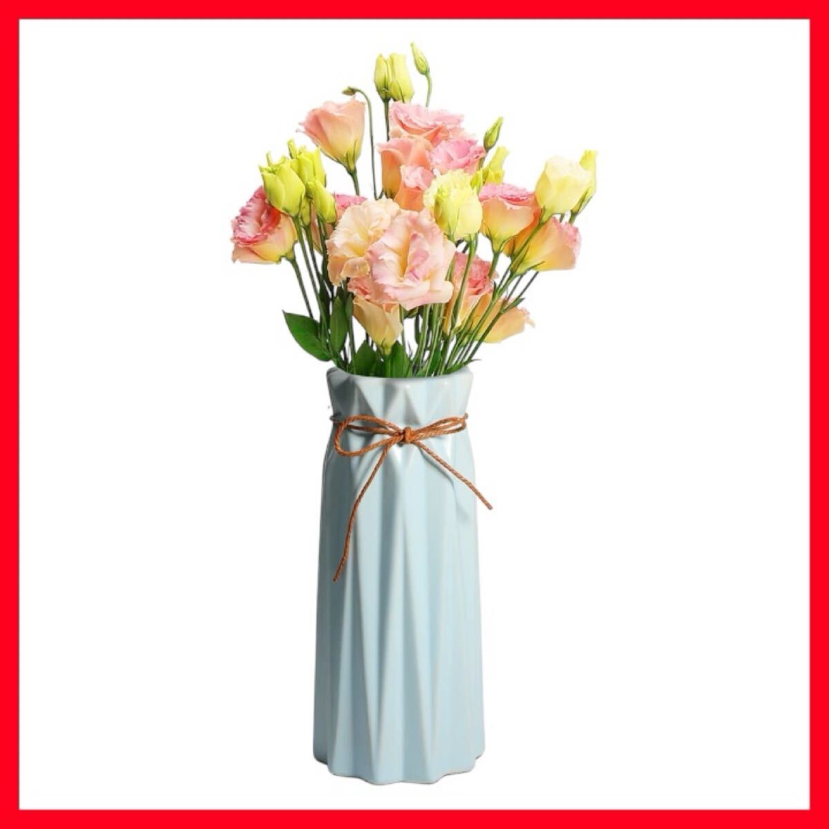 - AMJ 花瓶 おしゃれ 大きい 陶器 一輪挿し 花器 幾何学 フラワーベース リボン付き 北欧 シンプル セラミック (ブルー)