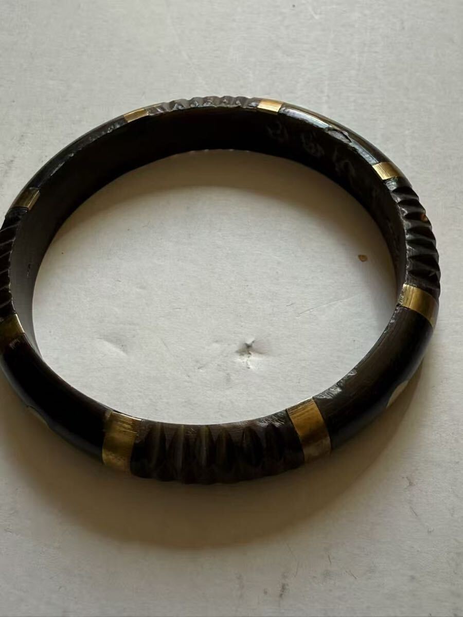 - ヴィンテージ角と金属 黒と金のバングル年代物