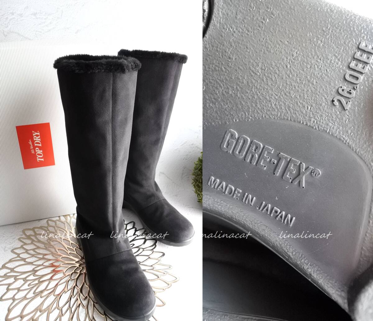 - 美品です ASAHI トップドライ* ゴアテックス ロング ブーツ 内ファー スウェード調 ロング ブーツ 黒 26㎝ 3E 防水防滑
