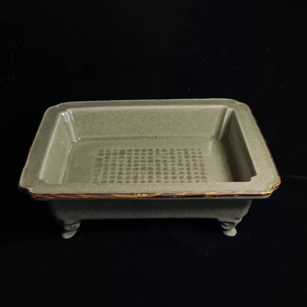 - 9+GV9736 g7 k22「東洋美術」 中国骨董 人間国宝 磁器製品【丁窯彫刻の金文字水仙鉢】 旧物 孤品 珍品 陶磁器 収蔵価値が高い