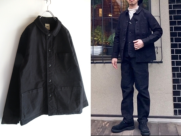 - FOB FACTORY FOBファクトリー F2373 MOLESKIN JK コットン モールスキン カバーオール フレンチワークジャケット 4/XL 黒 ブラック
