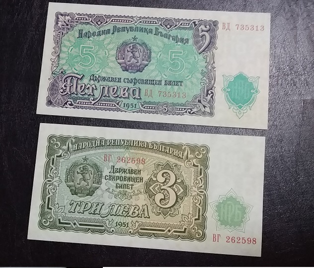 - ☆【外国紙幣・旧紙幣】ブルガリア 3レヴ・5レブ紙幣 1951年 レヴァ /古紙幣 お札 コレクション