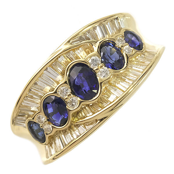 > 送料無料 本物 サファイア ダイヤモンドリング 指輪 K18イエローゴールド サファイア0.97 ダイヤ0.78 14号 仕上げ済み アクセサリー 高級