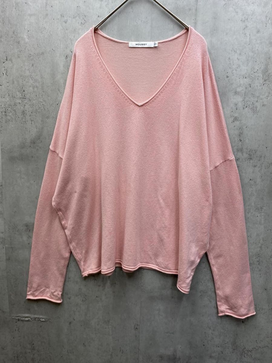 - ゆうパケットOK MOUSSY マウジー 薄手 ワイドVネック カットオフ ニット セーター sizeF/ピンク ◆■