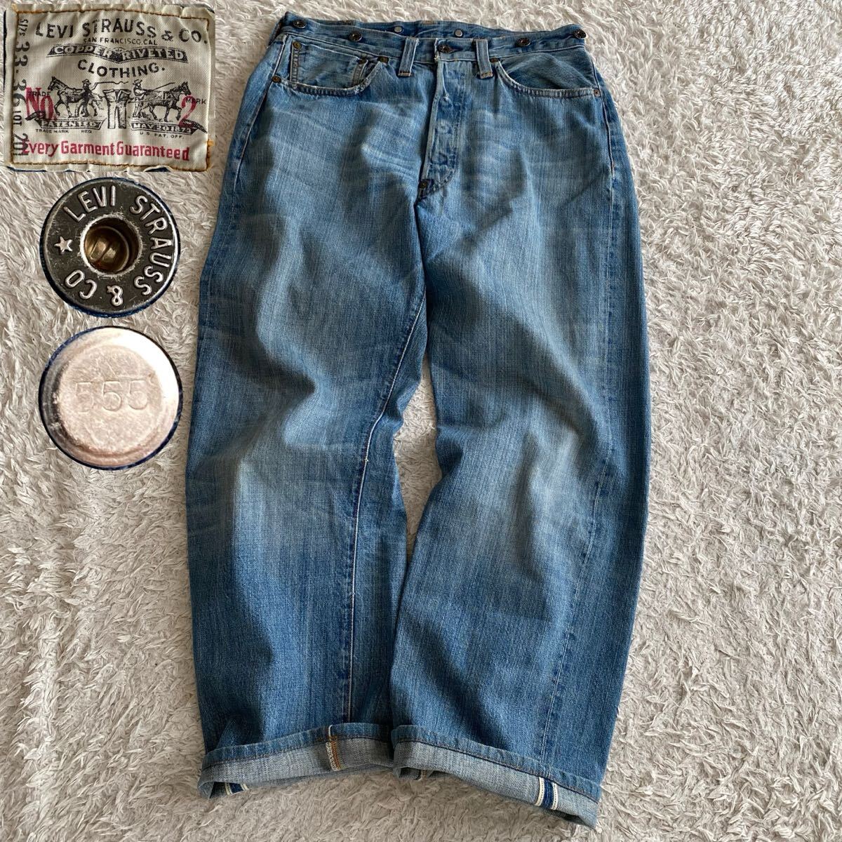 - 20s復刻/W33 リーバイス 20201-0128 バレンシア工場 青耳セルビッジ セルビッチ 尾錠 バックルバック サスペンダーボタン USA製 デニム