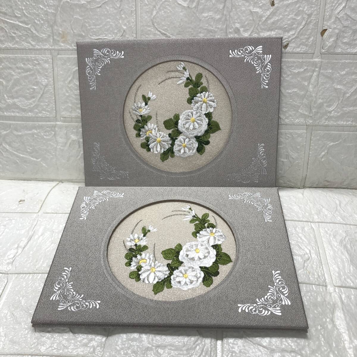 ★【在庫処分価格】電報台紙 刺しゅう電報 白菊 弔電 お悔やみ 2点☆C9-1195J拍卖