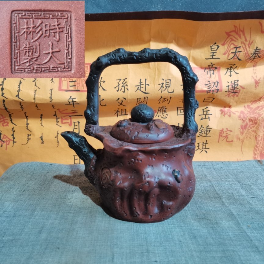 - 極細工 旧蔵 宜興紫砂壺 朱泥 名家手作壺 茶壺 煎茶道具 茶具 茶道品 置物 擺件 中国美術 装飾 収蔵 コレクションsux150