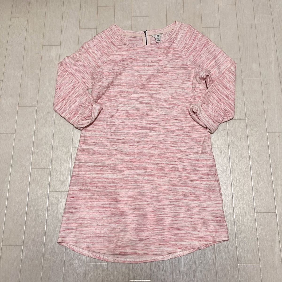 > 和849★ L.L.Bean エルエルビーン ミニワンピース チュニック ロールアップ袖 XS ピンク レディース アウトドア
